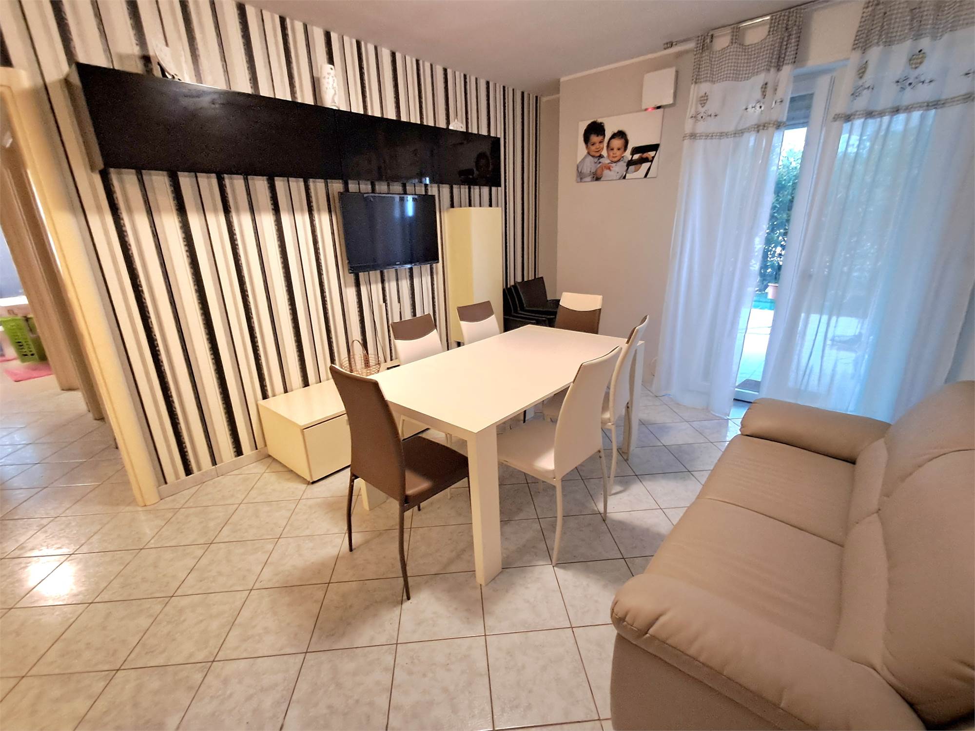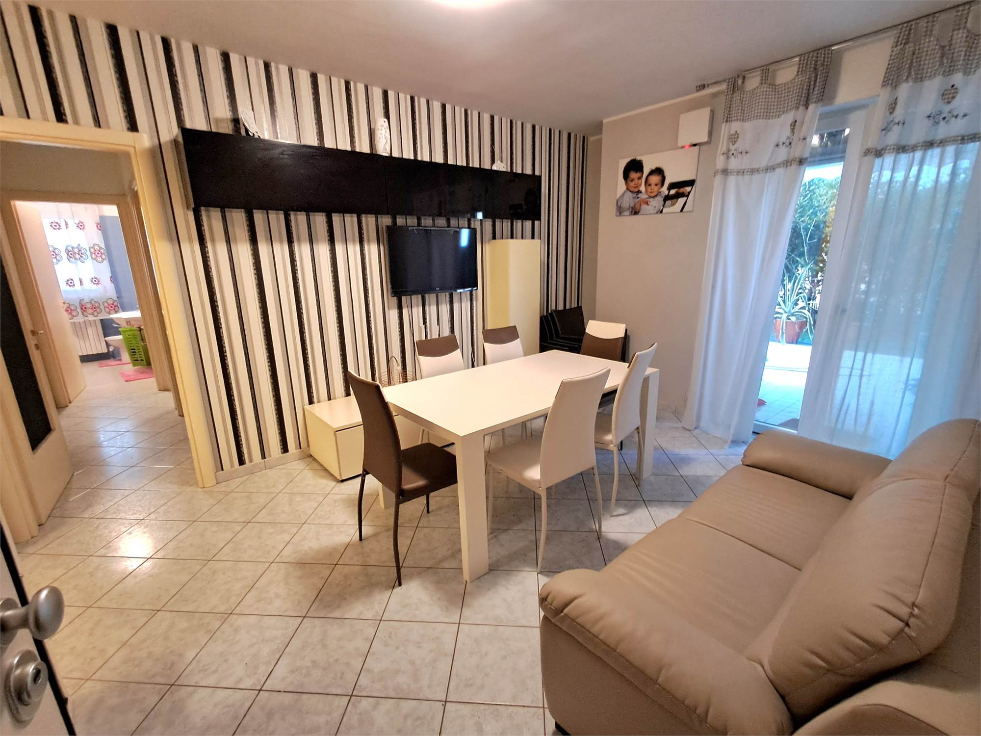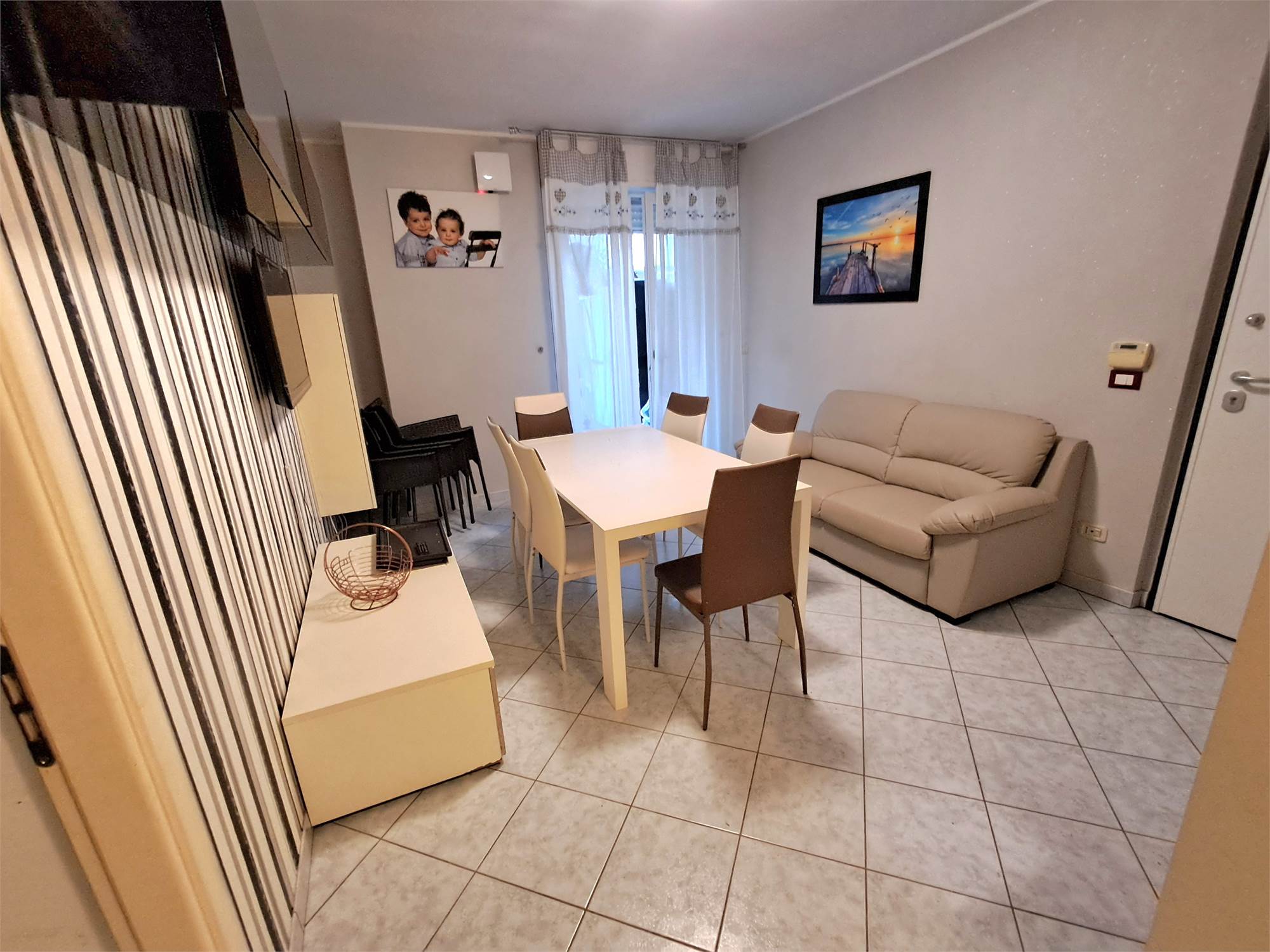 Porto d’Ascoli pressi centro commerciae “La Fontana”. Appartamento dalle dimensioni di 65 metri quadri circa composto da soggiorno, cucinotto, camera matrimoniale, cameretta e bagno finestrato con vasca. Completa la proprieta’ una corte esterna in parte pavimentata di circa 180 metri quadri. L’immobile in oggetto e’ posto al piano terra in palazzina di recente costruzione, situata in zona servita di tutti i principali servizi e non distante dal mare. Provvisto di riscaldamento autonomo con caldaia a condensazione, infissi in con doppio vetro, pavimentazione interamente in monocottura, predisposizione per climatizzatore, portone blindato, videocitofono, impianto di allarme, tapparelle e tenda da sole motorizzate, cappotto termico. Ottime condizioni generali. Ideale come residenza o come casa per trascorrere le vacanze.
