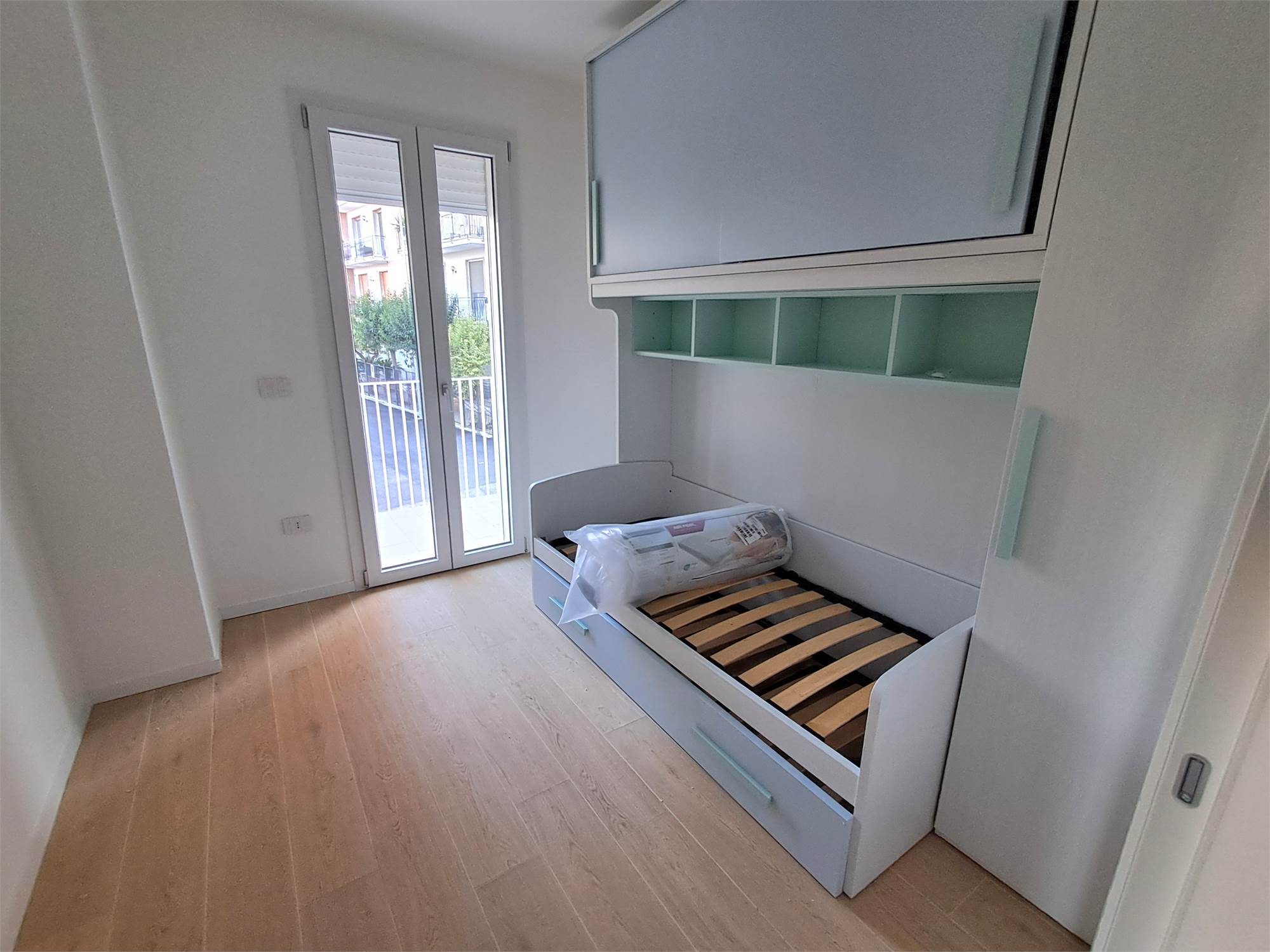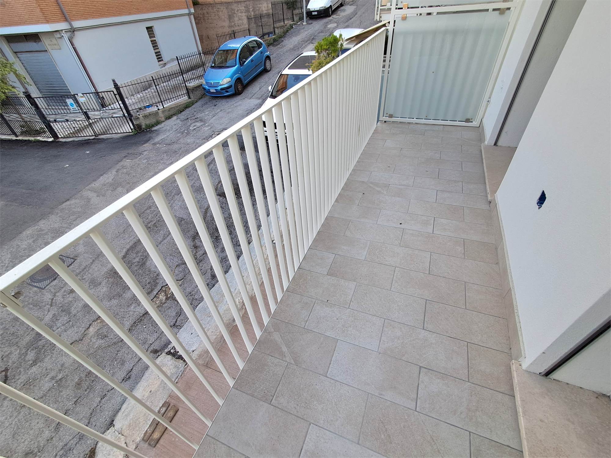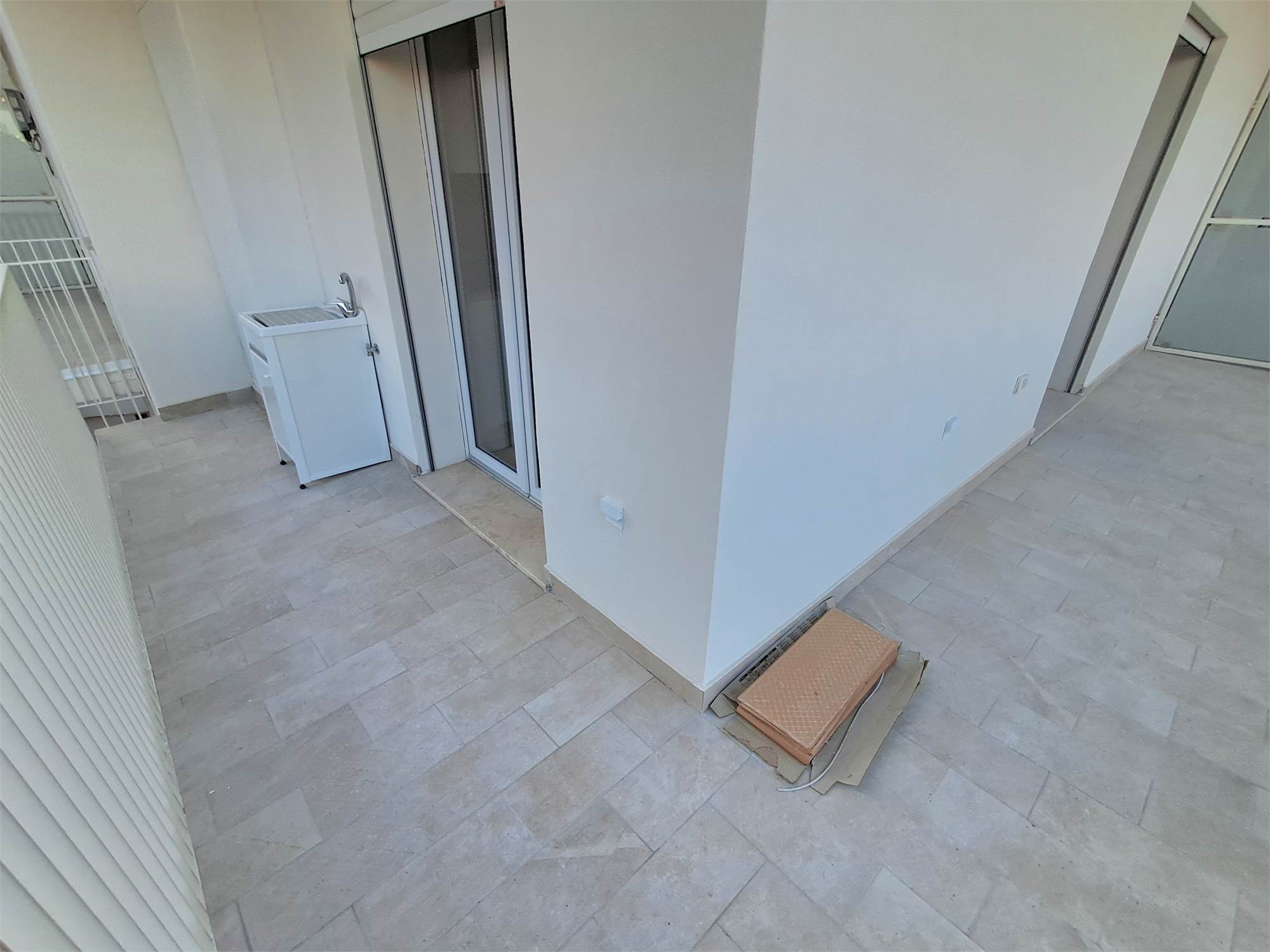 Zona centrale. Appartamento nuovo e mai abitato dalle dimensioni di 60 metri quadri circa composto da ingresso su soggiorno con cucina a vista, camera matrimoniale, cameretta e bagno. Completano la proprieta’ 2 terrazzi di circa 20 metri quadri complessivi e un posto auto. Provvisto di portone blindato, video citofono, tapparelle motorizzate, sanitari sospesi, termo arredo, impianto fotovoltaico, climatizzazione, facciata rivestita con cappotto termico e altro.
