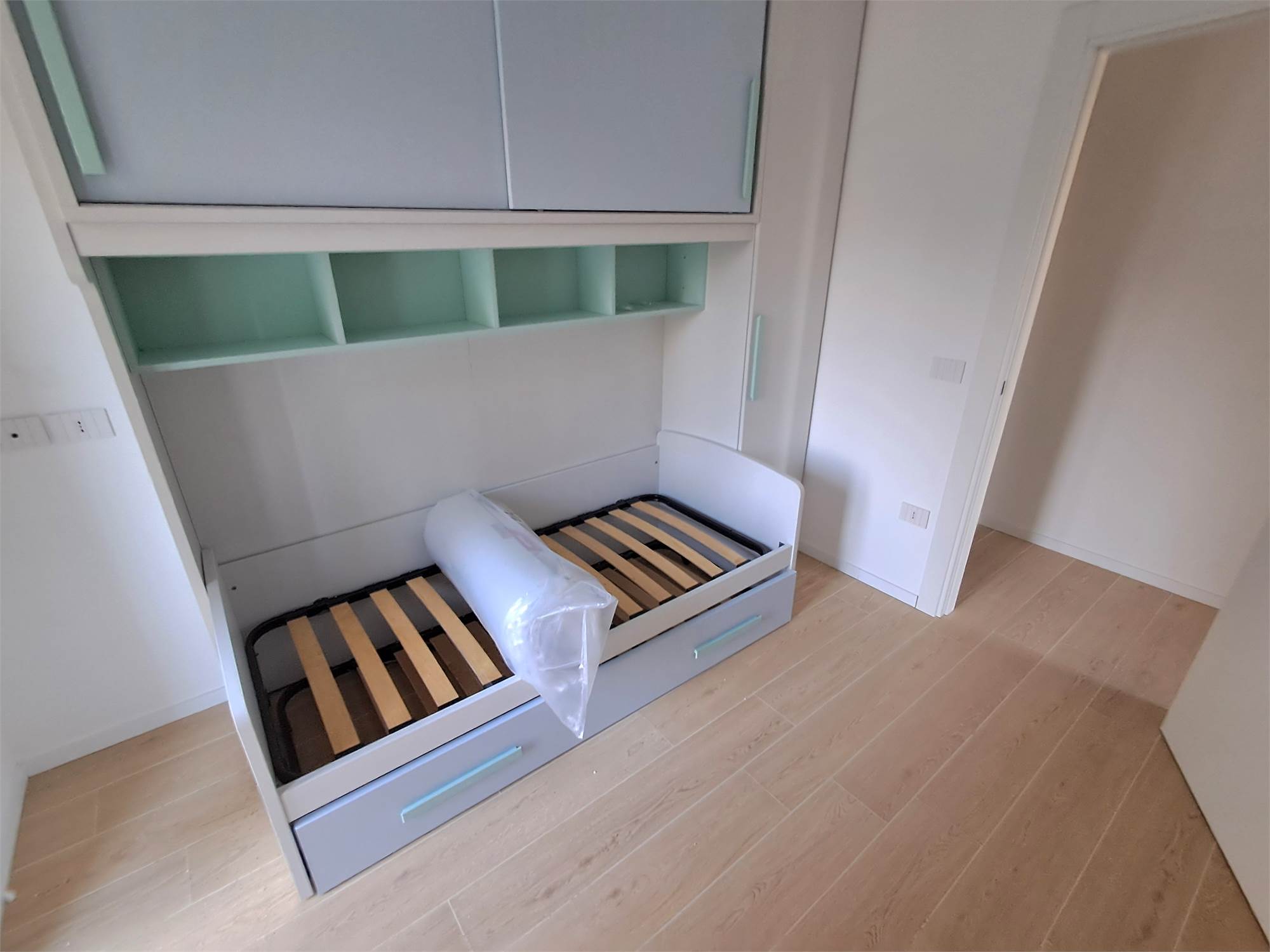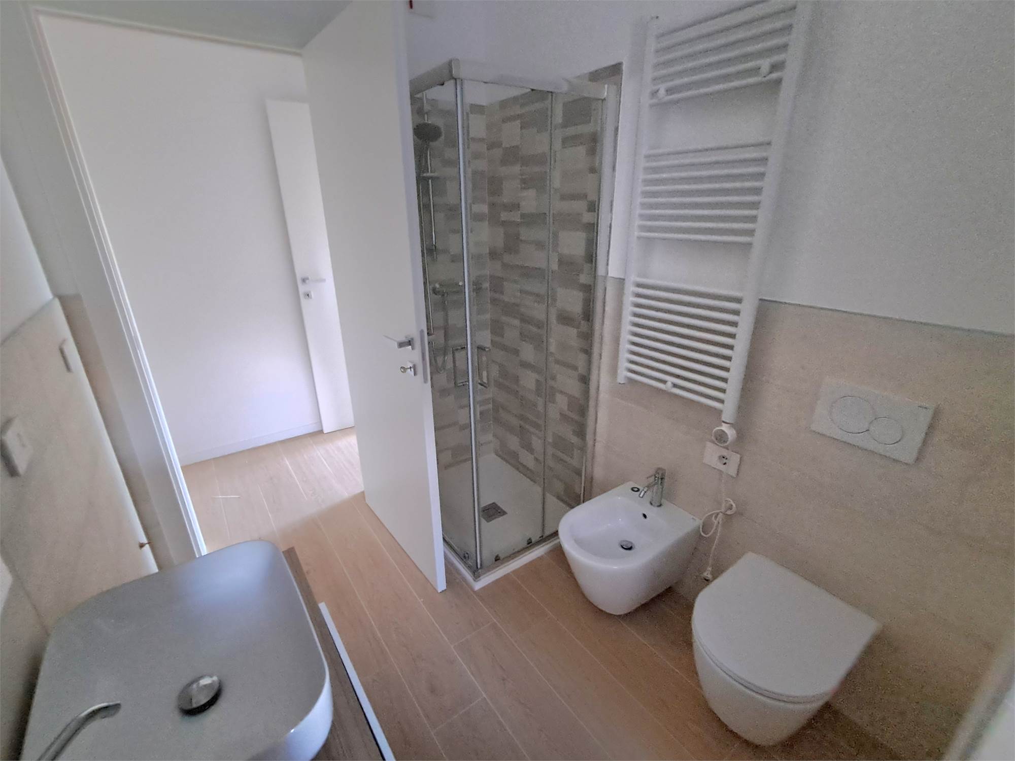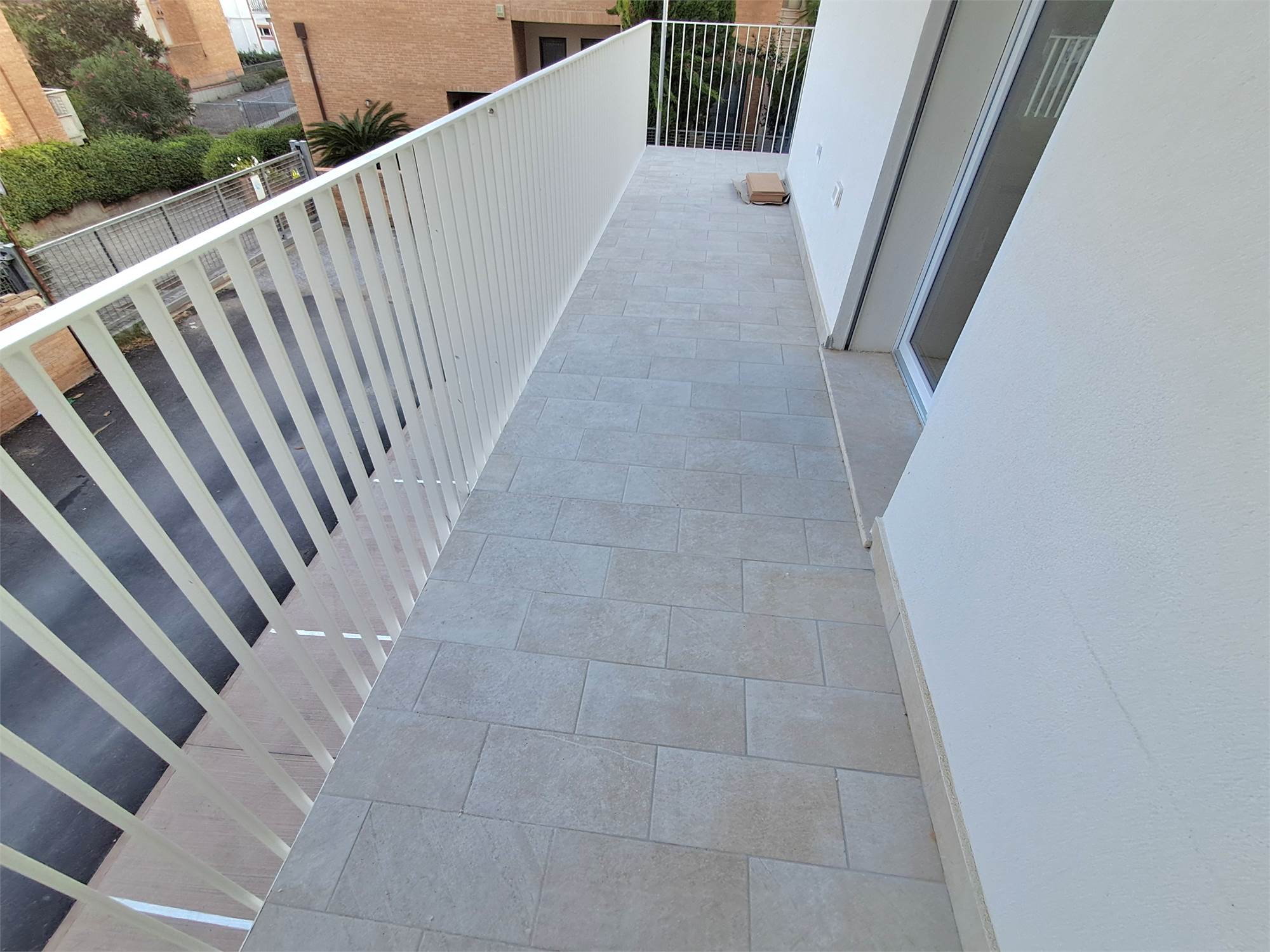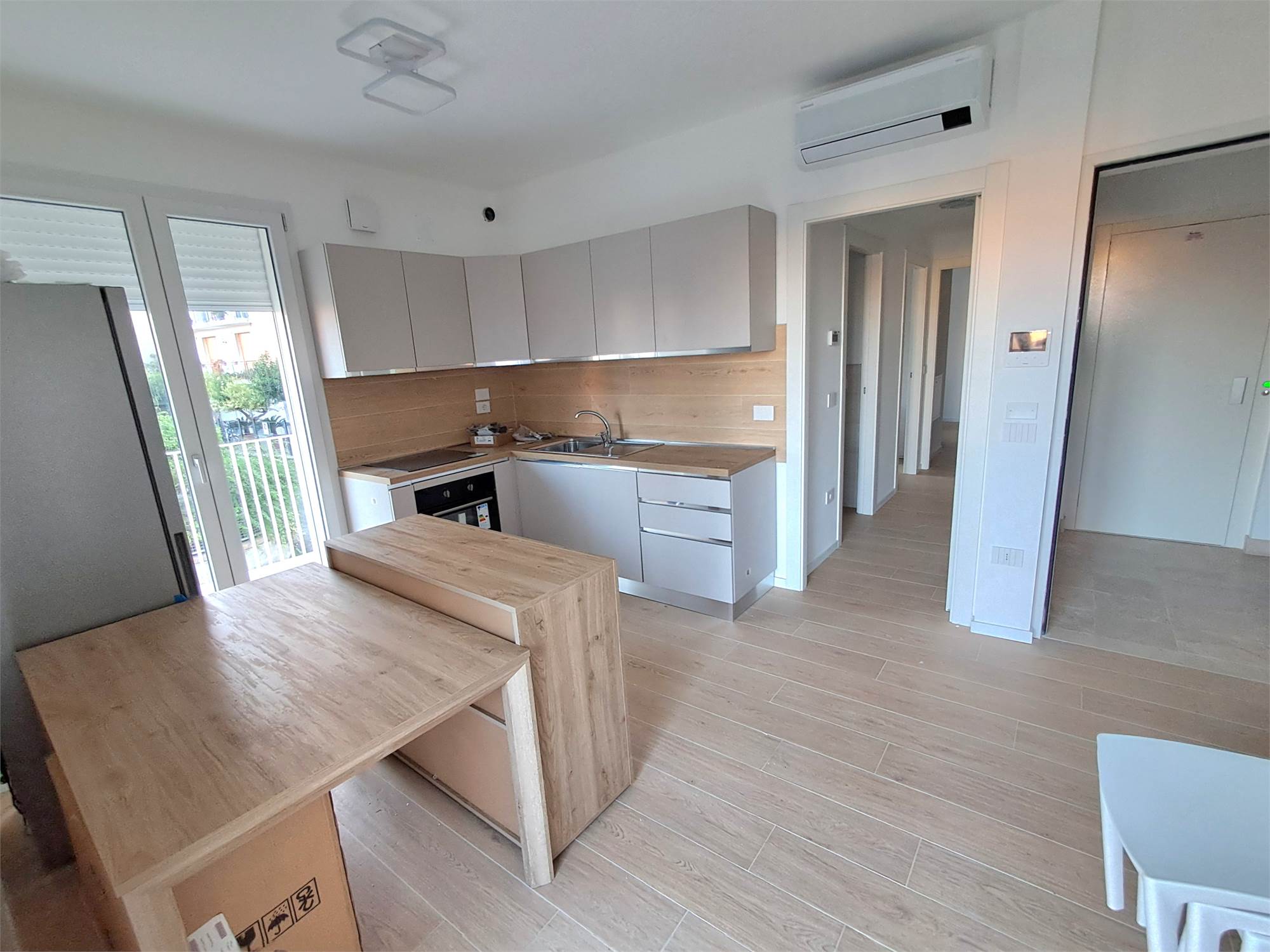 Zona centrale. Appartamento nuovo e mai abitato dalle dimensioni di 60 metri quadri circa composto da ingresso su soggiorno con cucina a vista, camera matrimoniale, cameretta e bagno. Completano la proprieta’ 2 terrazzi di circa 20 metri quadri complessivi e un posto auto. Provvisto di portone blindato, video citofono, tapparelle motorizzate, sanitari sospesi, termo arredo, impianto fotovoltaico, climatizzazione, facciata rivestita con cappotto termico e altro.