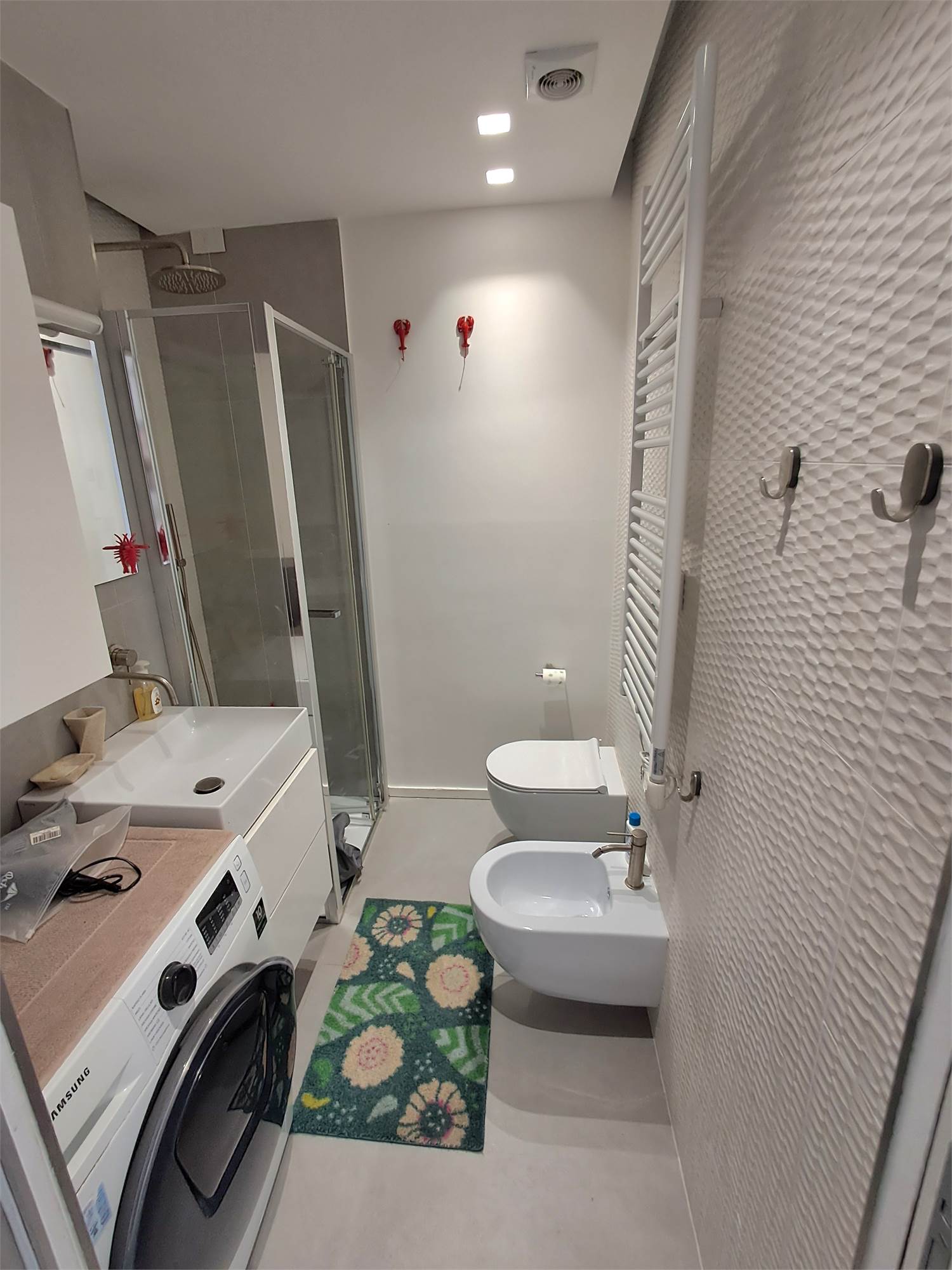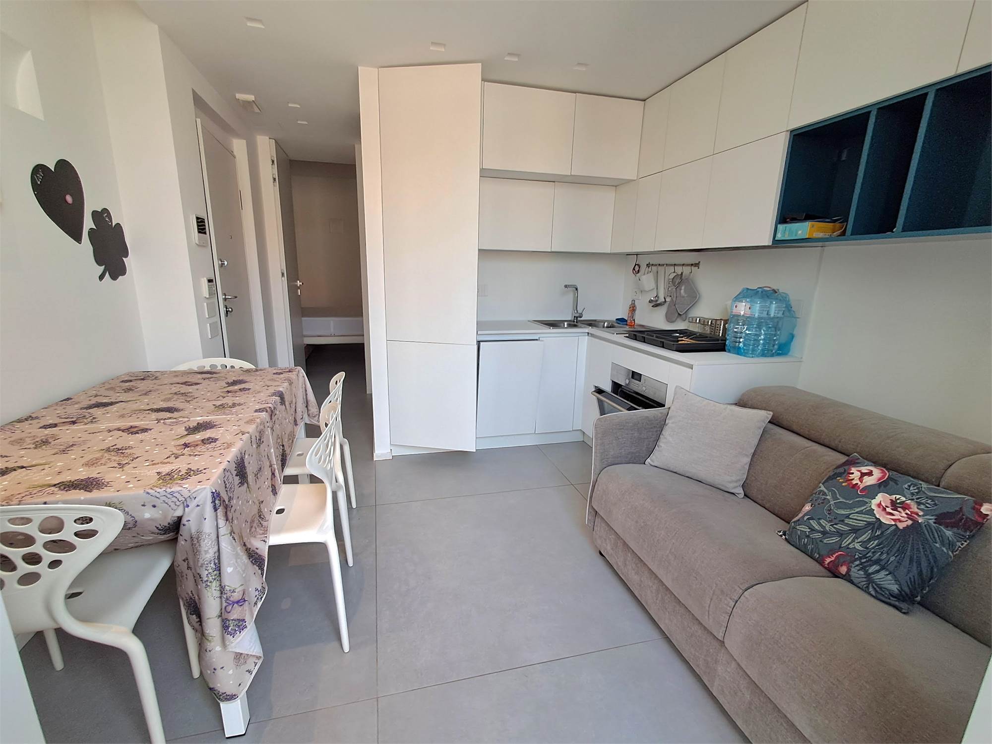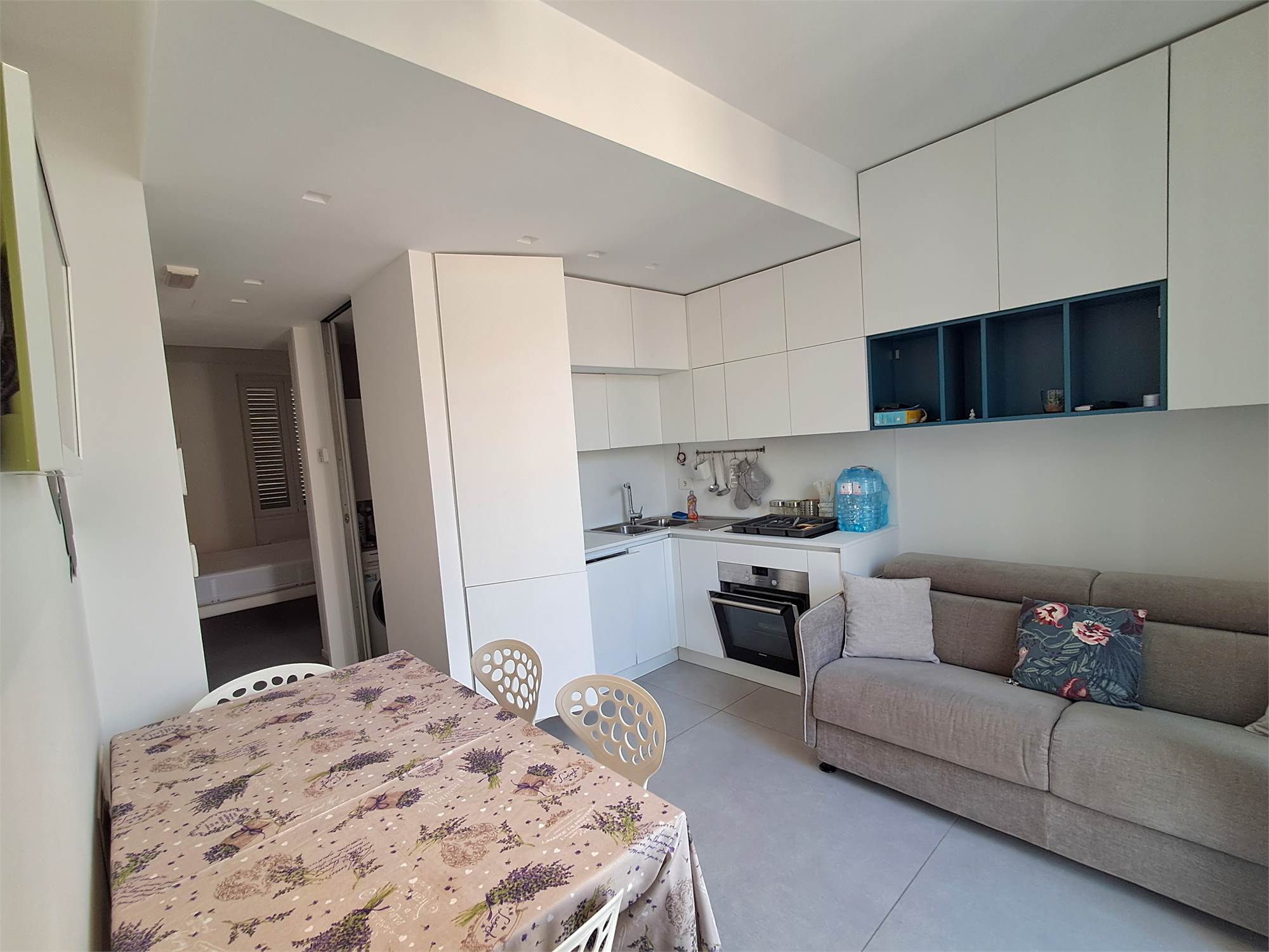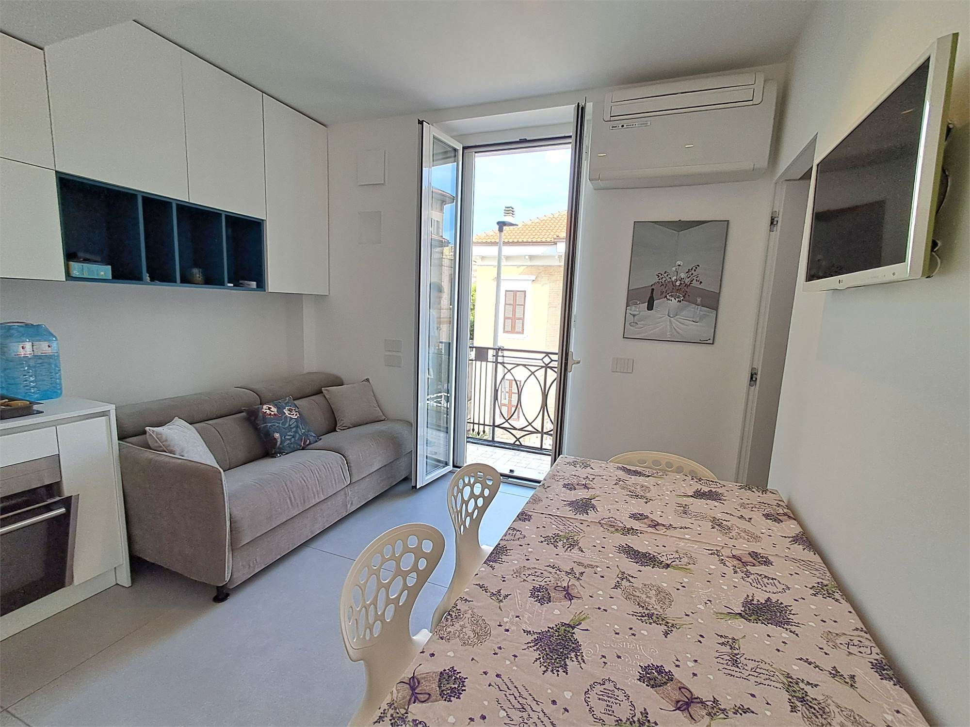 Zona centro/mare. Appartamento dalle dimensioni di 45 metri quadri circa composto da ingresso su soggiorno con cucina a vista, camera matrimoniale, cameretta e bagno. Completa la proprieta’ un balconcino di circa 2 metri quadri. Provvisto di portone blindato, video citofono, sanitari sospesi, climatizzazione, infissi in pvc con doppio vetro, zanzariere, impianto di allarme, riscaldamento a pavimento, pavimentazione interamente in gres.