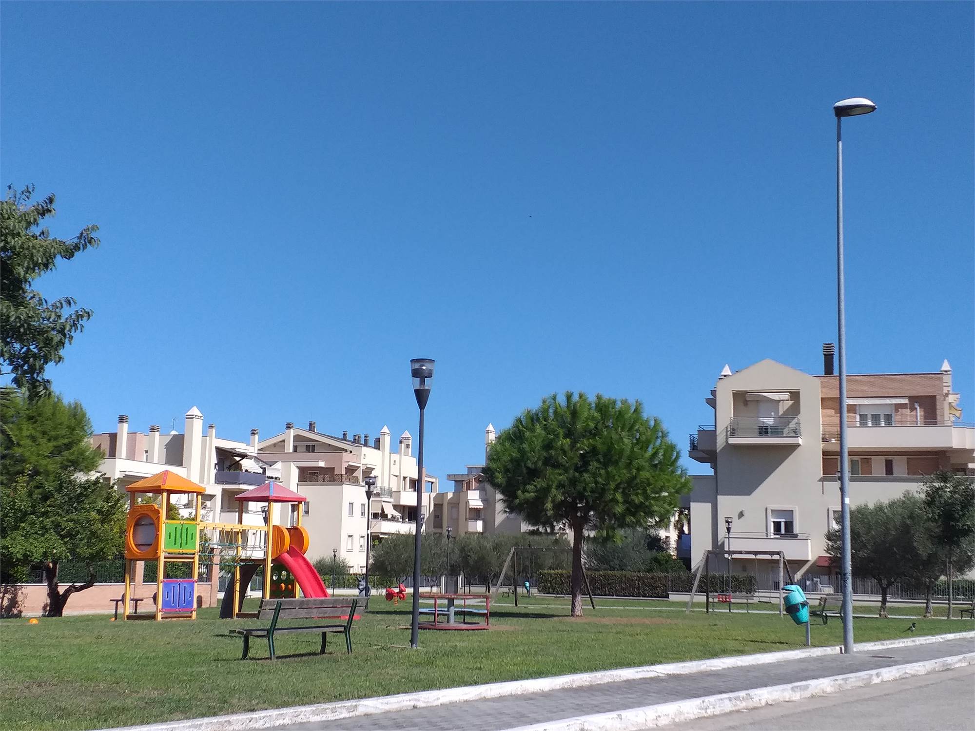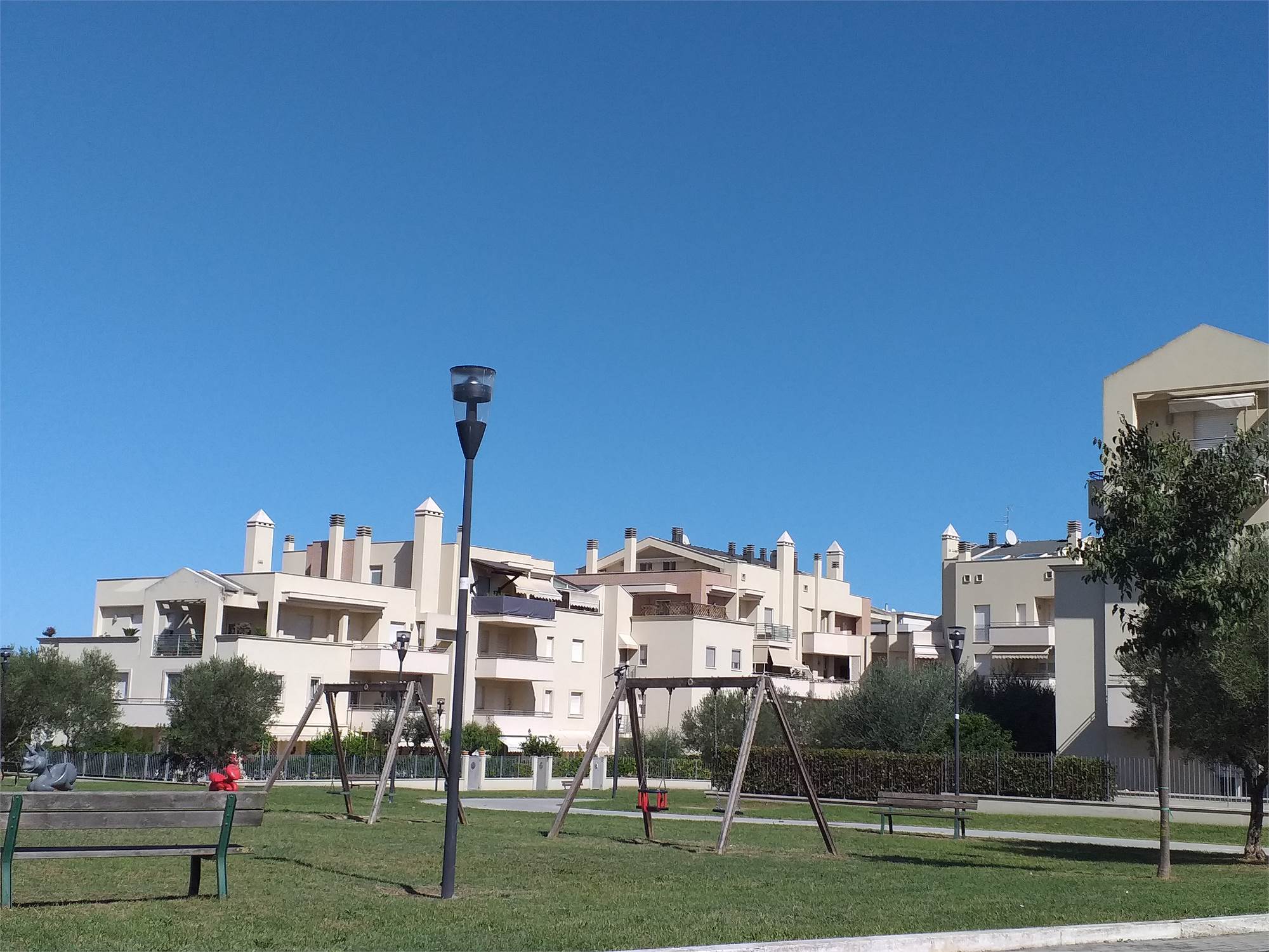 San Benedetto del Tronto zona San Pio X. Appartamento dalle dimensioni di 90 metri quadri circa, composto da soggiorno, cucina abitabile, camera matrimoniale, camera doppia, cameretta e 2 bagni. Completano la proprieta’ una terrazza e un balcone di circa 15 metri quadri complessivi e un comodo garage di circa 25 metri quadri. L’immobile in oggetto e’ posto al piano secondo con ascensore in palazzina di recente costruzione situata in zona residenziale servitissima ed a soli 500 metri circa dal mare. Provvisto di portone blindato, infissi con doppio vetro, pavimentazione interamente in gress, videocitofono, cappotto termico, riscaldamento autonomo, climatizzato. Ideale per coppia o per famiglia.